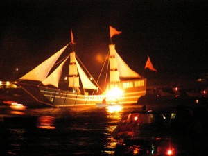 This act of heroism is re-enacted every year since 1931, with dramatizations of this victory culminating in the burning of a Turkish Flagship replica followed by a spectacular choreographed show of fireworks with music.