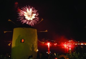 Το βράδυ του Σαββάτου το έθιμο κορυφώνεται με την αναπαράσταση της Ανάστασης μέσα σε μία εκθαμβωτική ατμόσφαιρα χιλιάδων κεριών και αμέτρητων πυροτεχνημάτων που φωτίζουν μαγευτικά τον ουρανό του Αιγαίου. Δεν τελειώνει, όμως, εκεί.
