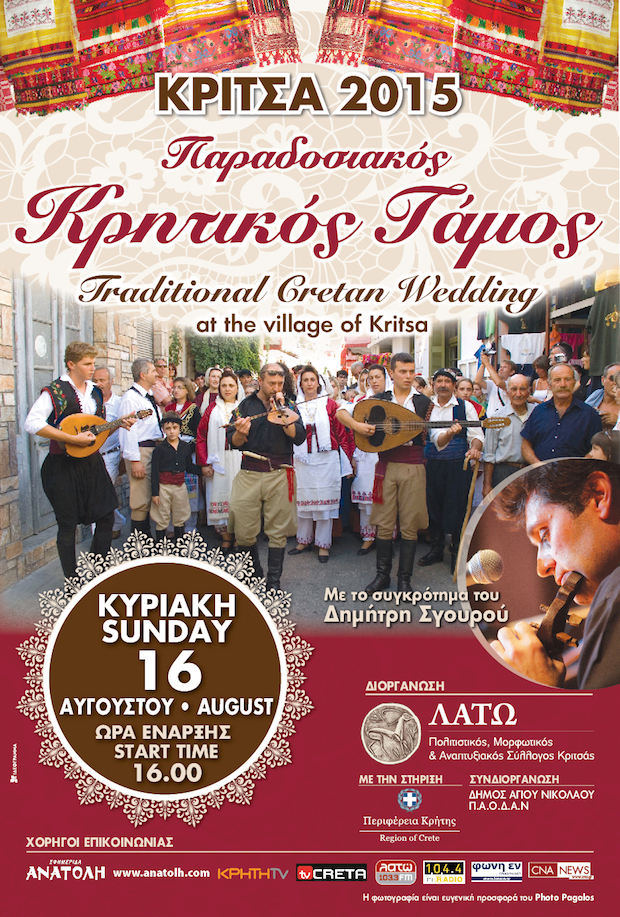 Ο «Κρητικός Παραδοσιακός Γάμος» θα ξεκινήσει στις 4 απόγευμα, με την συμμετοχή του συγκροτήματος του Δημήτρη Σγουρού.