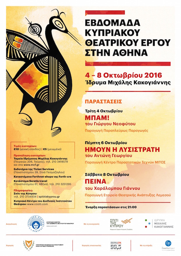 *Η «Εβδομάδα Κυπριακού Θεατρικού Έργου στην Αθήνα» επιχορηγείται στο πλαίσιο του Προγράμματος ΠΟΛΙΤΙΣΜΟΣ των Πολιτιστικών Υπηρεσιών του Υπουργείου Παιδείας και Πολιτισμού της Κυπριακής Δημοκρατίας.